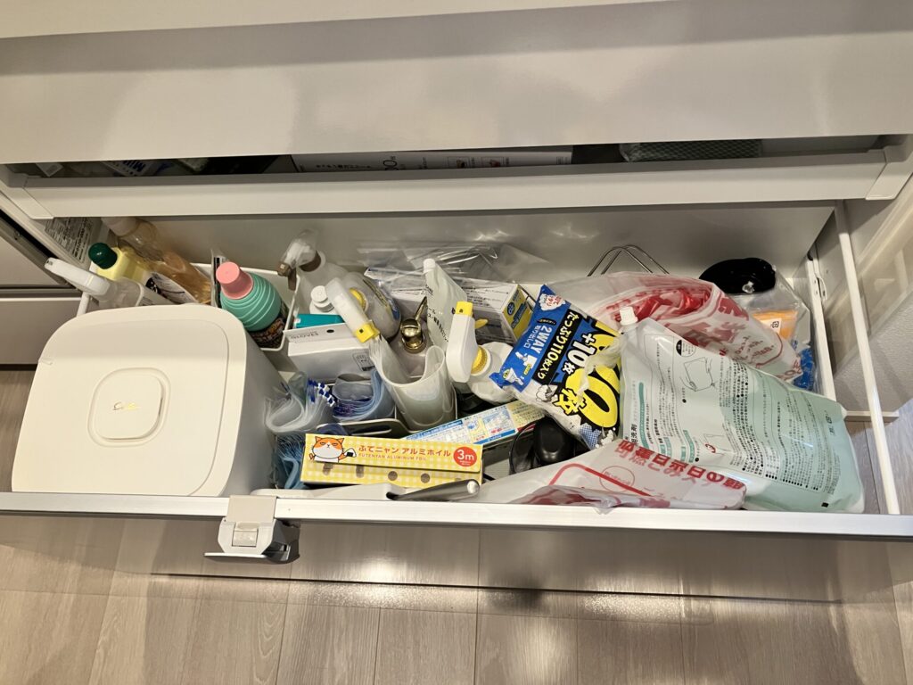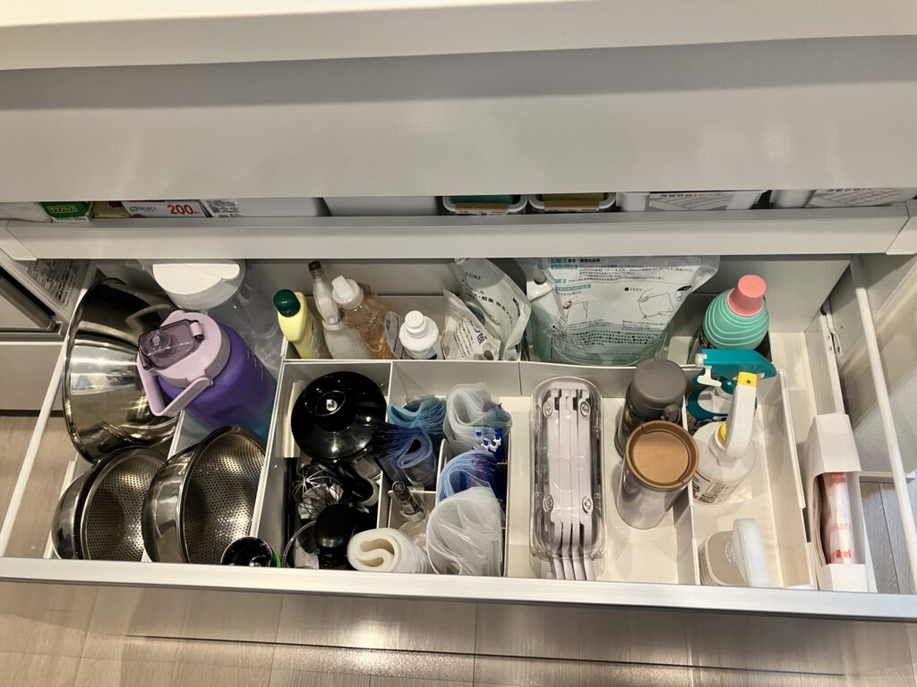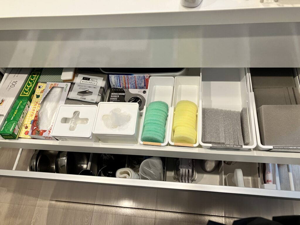 キッチンシンク下の引き出しが整い、見やすく取り出しやすくなりました(Sさま)